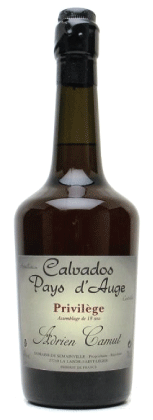 Camut Calvados Privilège displays a deep amber hue, reflecting its long maturation and complex profile.